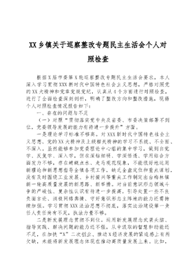 XX乡镇关于巡察整改专题民主生活会个人对照检查根据X届市委第X轮巡察整改专题民主生活会要求,本人深入学习贯彻XXX新时代中国特色社会主义思想,严格对照党的XX大精神和党章党规党纪,认真从4个方面进行对照检查,进行了全面检查深刻剖析,明确了整改方向和整改措施,现将个人对照检查情况报告如下:一、存在的问题与不足(一)对照贯彻落实党中央及省委、市委决策部署不到位,党委领导发展的能力有待进一步提升方面。一是理论学习标准不够高。对XXX新时代中国特色社会主义思想、党的XX大精神及上级相关精神的学习不系统、不全面、不深入。虽然能够参加党委理论中心组的集中学习,做到自觉学、反复学、深入学,但在深钻细研、学深悟透、学用结合方面发力不够,存在蜻蜓点水、走马观花现象,不能很好地运用新理论和新思想指导全镇各项工作,缺乏全盘定位和重点谋划,没有及时围绕工业发展、乡村振兴等重点工作制定出台梅林镇新一轮高质量发展的新思路、新举措。对当前意识形态领域斗争的严峻性、复杂性认识有待进一步提高,引导处置一些不良负面言论、消极网络舆情、守好意识形态主阵地的能力还需持续加强。学习贯彻XXX法治思想不彻底,落实法治建设第一责任人责任尚有不足,执法力量不够。二是新发展理念贯彻不到位。运用新发展理念武装头脑、指导实践、解决问题的能力还不强,从中汲取的智慧和动能还不足,在加快X二次创业、推动X经济发展的紧迫感上有所欠缺,未能将新发展理念体现在推动高质量发展上来。比如,面对发展瓶颈,转型升级的步伐较慢,工业发展和园区建设整体规划还不够深入,工作专班不健全,功能定位不明晰,虽然X营商环境有所改善,但仍存在一些短板和薄弱环节,在打通营商环境的痛点和堵点上,攻坚克难合力不够,导致现有企业做不大,优质企业留不住,传统产业回不来,平台公司还处于起步阶段,作用发挥不明显,对于重点项目落地建设、投产达效等方面,还存在思考少、措施少、服务少,对上争取不足,导致项目建设进展缓慢。三是乡村振兴成效不理想。在主动解决乡村振兴中的问题还不够,在如何更好地发展乡村产业促振兴、发展村集体经济等方面研究思考还不够全面,导致和美乡村建设、村集体经济发展、集镇规划等方面还存在短板。如,在巩固拓展脱贫攻坚成果同乡村振兴有效衔接工作中,未能将X区位优势、经济优势转化为乡村振兴的先发优势,往往都是被动应对省市检查督查,没有深入研究从根子上找破解举措。在偏远村组集中供水、林区道路等基础设施建设难题上,过于强调项目争取难度大、配套政策匮乏,从根本上解决问题攻坚还不够。(二)对照群众身边的腐败问题和不正之风隐形存在,群众反映强烈的问题未完全解决,党委抓党风廉政建设的能力有待进一步提升方面。一是制度落实不够严格。工作中存在求稳怕变思想,主动担当意愿不足,在把工作做实做深做细上还欠火候,存在重布置、轻落实的问题,在制度执行、严格管理上跟的不紧、督的不严,缺少钉钉子精神。虽然成立了X内部控制工作领导小组,但日常开展指导培训不足,村三资及工程建设管理制度执行不够严格,村务监督委员会的监督作用发挥不充分,效果不明显,导致村集体资产流失、管理涣散等现象。二是工作触角不够敏锐。敏锐性和警觉性还不足,对于一些职能部门、村级可能存在的问题,发现不够及时、没有提醒到位,进行警示教育、约谈提醒较少,监管管理制度执行不够严格。虽然印发了《X内部管理相关制度》,但没有严格执行,还存在财务支付审核不严格、采购程序不规范、工程变更手续不全等情况,导致镇级财务制度执行不到位现象时有发生,在如何更加规范管理、合规合理使用资金,缺乏有效措施和办法。三是风险防控不够扎实。对一些苗头性、倾向性问题发现晚、提醒晚,达不到抓早抓小、防微杜渐的效果,对重点领域、重点环节、重点岗位的风险防控不够扎实。在贯彻执行市委、市政府关于X决策部署上不够有力,多个区域被卫片执法监督发现,部分部门在履行工作程序上存有漏洞,廉政风险防控的意识和能力有待于进一步加强。(三)对照基层党组织建设不够规范,党委抓班子带队伍、基层治理能力有待进一步提升方面。一是干部建设不够坚强有力。对镇村干部培训培养不够细化,部分干部缺乏创新精神,对年轻干部学习培养重视不足,后备力量培养储备不足,存在青黄不接情况。如村干部年龄偏大,队伍不够稳定,少数干部在主动担当作为上有所欠缺,距离落实一改两为要求有差距,发现问题、解决问题的工作合力没有完全形成。二是责任担当意识不够牢固。在抓解决问题主要矛盾方面合理选择方式、火候,在原则坚定、策略灵活等方面做得还不够,存在一定程度本领恐慌。在抓矛盾纠纷调处、安全生产责任等方面还欠缺力度,落实主体责任有时还停留在开会部署、会议强调、完善制度上,传导压力、狠抓落实的意识还不强,导致部分管理制度形同虚设。如在风险隐患排查治理、信