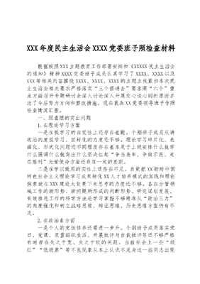 XXX年度民主生活会XXXX党委班子照检查材料根据按照XXX主题教育工作部署安排和《XXXXX民主生活会的通知》精神XXXX党委班子成员认真学习了XXXX、XXXX以及XXX等相关内容围绕XXXX、XXXX、XXXX的主题主线紧扣本次民主生活会相关要求严格落实三个摆进去要求照六个重点方面召开专题研讨会深入讨论深入开展交心谈心剖析原因并出了今后努力方向和整改措施。现在我表XX党委领导班子作照检查情况汇报。一、照查摆的突出问题1.在理论学习方面一是在抓学习的自觉性上还存在差距。个别班子成员从讲政治的度抓学习、抓转化的力度还不够。理论学习碎片化、表面化、形式化问题还不同程度存在基本足于上级安排什么就学什么强调什么就突出什么坚决扛起争当表率、争做示范、走在前列光荣使命方面还存在一定的差距。二是在学以致用的实性上还存在不足。自觉把XX新时中国特色社会主义理论学习成果转化XX人才培养模式的实践和理论探索放在XXX建设大背景下来思考的力度还不够。各自分管领域工作的新形势、新问题所形成的判断形势、研究谋划发展、有效推进工作的科学方法论学习掌握不够精准从政治三力的角度强化和树立战略思维、辩证思维、历史思维方面仍有不足。2.在政治素方面一是个人的党性修养还需进一步升。个别班子成员落实党日、党课、双重组织生活、开展批评与自我批评等还不够严格有时存在失之于宽、失之于软的问题。当前社会上一些级红低级黑等不良现象从本上认识不足身边一些同志出现的躺平佛系美分精日等错误思潮旗帜鲜明批驳不够挺身而出与之斗争的精神还不够坚决。二是党组织政治功能还需进一步强。在XX党委推动的XX支部双带头人工程中部分支部书记日常教学科研任繁重还要身兼数职受年龄和工作精力限制致使个别支部党建工作与业工作结合不够紧两张皮现象比较突出。3.在能力本领方面一是运用新理论、新思想指导实践的成效不够显著。在XX谋划重大战略、制定重大政策、部署重大任的过程中各类《方案》《计划》《见》等宏观指导性文件都能够做到紧跟创新思想、体现创新理论但在终端抓手上缺乏创造性地转化具体措施的方法存在一定的落实误差。二是与时俱进、全面推动抓创新的识有所弱化。个别班子成员思路陈旧创新识不缺乏探索精神有时还习惯凭经验考虑问题和办事习惯用一些办法、套路、思维来想问题、干工作工作中出现的新情况、新问题研究不够及时导致常规性工作多亮点工作少、精品工作少。4.在担当作方面一是斗争精神仍显缺乏。今年党和国家大事多、喜事多、要事多的实际各种敌势力识形态领域斗争尖锐复杂虽然班子成员都能够做到手机网络特别是群、朋友圈上一些与主流声音不相符的观点言论做到自己不不传但坚决反击、果断批驳、及时醒做得不够斗争精神不够坚决。二是开拓创新能力不足。个别班子成员工作时间较、任压力较大开拓创新识不够敢人先、敢闯敢试精神不足面身边个别党员干部庸懒散现象、工作粗浅慢、利益斤斤计较、纪律宽松软隐患等现象未能很好落实政治思想教育工作领导责任优秀教师入党上热中温下冷的现象依然存在。5.在工作作风方面一是主动深入基层一线破题的识还不够强。班子成员在互相交流中感到随着近几年各项工作压力的大各种考核任的增多部分领导群众观念有所弱化有时坐等上门多主动问需少同师生主动沟通、主动关心少扑下身子走进师生身边近距离听取师生心声做的还不够。二是群众的责任担子抗的还不够稳。当前广大一线教职工群体多样化、多层次、多方面的精神文化需求关注不多、调研不深、了解不够存在渠道单一、方法简单的情况。6.在廉洁自律方面一是从严治党的压力传导还存在肠梗阻的现象。有的班子成员表示有很多工作想到了看到了也安排布置了但在抓落实上有所不足平时工作一忙就把大的时间和精力投入在事性工作中没有狠下功夫去强作风建设的过程监管。二是党风廉政建设期性缺乏抓到底的韧劲。个别班子成员党风廉政建设的期严峻形势认识还不够深入认自己不管钱、不管人工作中注重业工作多党的廉政建设工作预防做的少、工作部署少。一些风险隐患警钟敲得多缺乏督查和跟踪问效各级党组织党风廉政建设抓的不够。二、产生问题的原因分析一是主观改造不够彻底。从思想深处来讲说明有的班子成员没有将自己本职工作置身于党的事业度去谋划去推动缺乏远见以工作繁忙、时间精力有限由XXX新时中国特色社会主义思想领悟还不通透集中学习的多、个人自学的少被动学习的多、主动学习的少专题讨论的多、系统学习的少虚学习的多、联系实际的少没有做到往深里走、往心里走、往实里走。二是党性锻炼不够严格。个别班班子成员党性不强觉悟不担当识不够以牢固的公仆识践行初心共产党人那种无欲则刚、天下公的大情怀大修有所欠缺。照四个识四个自两个确立两个维护的政治标杆把四个识内化于心、见之于行上还需要持久深化