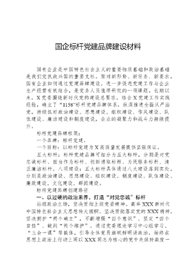 国企标杆党建品牌建设材料国有企业是中国特色社会主义的重要物质基础和政治基础是我们党执政兴国的重要支柱。面对新形势、新任务、新要求,国有企业如何通过党建品牌建设,进一步促进党建工作与企业生产经营有机结合,是党务人员值得研究的一项课题。长期以来,X党委围绕新时代党的建设总要求,结合X党建工作实践经验,确立了1158标杆党建品牌体系,纵深推进全面从严治党,持续抓好政治建设、思想建设、组织建设、作风建设、队伍建设、廉洁建设和制度建设,企业的凝聚力和战斗力持续提升。标杆党建品牌框架:一个品牌:标杆党建。一个目标:以标杆党建为X高质量发展提供坚强保证。五大标杆:标杆党建品牌可细分为五大标杆,分别是对党忠诚标杆、担当作为标杆、创新进取标杆、为民服务标杆、清正廉洁标杆。八项建设:五大标杆具体通过八大建设落到实处,分别是政治建设、思想建设、组织建设、制度建设、队伍建设、廉政建设、文化建设、群团建设。标杆党建品牌创建路径一、以过硬的政治素养,打造对党忠诚标杆站稳政治立场,坚决贯彻上级党委精神。高举XXX新时代中国特色社会主义思想伟大旗帜,坚决贯彻落实党的XXX精神,坚决拥护两个确立,不断增强四个意识、坚定四个自信、做到两个维护,通过党委理论学习中心组学习、三会一课等载体,引导全体党员旗帜鲜明讲政治,始终在思想上政治上行动上同以XXX同志为核心的党中央保持高度一致。坚定理想信念,着力抓实党性锤炼工作。创新教育载体,推进党性修养培训,在党员领导干部层面,以中国革命发展轨迹为参照,策划开展重走长征路主题理想信念教育,让党员领导干部身临其境,强化党性修养;在党员层面,充分用好周边红色教育资源,让广大党员通过专题教学、现场教学、研讨交流等形式,提升基本理论水平。坚守舆情阵地,全力抓好意识形态管控。切实加强和提升意识形态工作,牢牢掌握意识形态工作的领导权和主动权。坚守宣传阵地,建立网络实时监控平台,抓好热点政事、企业时事、先进故事的宣传,不断提升队伍凝聚力;抓实形势教育,党员高级经理带头深入所在党支部、联系点进行宣讲,实现形势教育全覆盖。二、以过硬的人才队伍,打造担当作为标杆建强中坚力量,大力推进干部年轻化。坚持党管干部原则,坚持五湖四海、任人唯贤,坚持德才兼备、以德为先。根据集团的统一部署,通过提职提拔、退岗继任、轮岗锻炼、空岗竞聘等方法,不断调优干部队伍结构;加大后备人员培育力度,创新转身培训、挂职锻炼等培育模式,打造过硬干部后备梯队,为干部年轻化提供了充足的人才储备。夯实引领基础,大力培育专家型人才。构建五联(联网、联政、联校、联人、联会)招才引智平台,大力引进行业领军人才、社会成熟型人才和高校毕业生,夯实高端人才基础。同时,加强专业序列人才的挖掘和培育,不断建强高级主任师、主任师、主管及专业序列后备队伍。注重人才培育,大力打造高技能队伍。统筹X优势资源,以两大中心(培训中心、实训中心)+分院(各部门分院)为载体,为职工成长成才提供良好环境。积极搭建技术运动会等特色竞技平台,在全体职工内掀起了比学赶超、精益求精的热潮,为高技能人才培育提供良好的土壤。三、以过硬的基础组织,打造创新进取标杆抓实组织建设。推进党支部建设标准化,构建党支部建设四库全书,通过一个计划(党支部工作计划)+四个工作文可居文库——海量学习资料,手机电脑均可下载www.wenkeju.com总库(思想教育库、组织资源库、工作制度库、保障支撑库)的总体框架,明确管理内容和要求,使四库全书成为标准化建设的展示馆、党支部工作的全景图、党务干部的工具书。抓实队伍建设。夯实党务工作基础,推进党支部书记、新任党务工作人员模拟培训,采用半军事化管理,通过多课目、高强度培训方式,增强党务工作者的实操水平。发挥党员先锋模范作用,突出党建促经营导向,积极推进三品牌主题、先锋带教二结对等活动,激励广大党员挑担子、扛指标、作表率,为企业稳步发展提供了有力支撑。抓实制度建设。始终坚持四同步四对接要求,定期对X党建相关制度进行完善修订,确保现行制度与上级党组织要求落实同步,切实提高党建制度的系统性、合规性和操作性。狠抓制度落实,构建党建量化考评体系,实施月考核、季点评、年考评,将党建工作考核与经济责任挂钩,以坚强的管理制度保障党建工作责任制落到实处。四、以过硬的服务能力,打造为民服务标杆坚持以文化人。紧扣集团文化内涵、结合企业实际、融合地方基因,构建以鹰文化为核心的品牌文化体系,形成5(企业精神、企业使命、企业愿景、企业哲学、企业核心价值观)+1(工作作风)的理念文化。通过大讨论、铸魂厂训、文化活动、专题培训等载体,深入推进文化建设,使企业的愿景、使命、价值观在职工群体中广泛传播,使企业文化基因融入职工一言一行。打造职