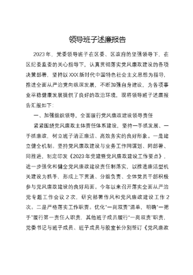 领导班子述廉报告2023年,党委领导班子在区委、区政府的坚强领导下,在区纪委监委的关心指导下,认真贯彻落实党风廉政建设的各项决策部署,坚持以XXX新时代中国特色社会主义思想为指导,推进全面从严治党向纵深发展,不断加强自身建设,为各项事业平稳健康发展提供了良好的政治环境,现将领导班子述廉报告汇报如下:一、加强组织领导,全面履行党风廉政建设领导责任紧紧围绕党风廉政主体责任体系建设,坚持一手抓发展、一手抓廉政,树立班子清正廉洁、高效务实的良好形象。一是建立健全机制。坚持党风廉政建设与业务工作同谋划、同部署、同推进,制定印发《2023年党建暨党风廉政建设工作要点》,进一步强化和健全党风廉政建设责任制落实,以推进廉洁型机关建设为抓手,形成上下贯通、分组负责、全体党员干部积极参与党风廉政建设的良好局面。今年以来召开落实全面从严治党专题工作会议2次,研究部署作风和党风廉政建设工作2次。二是严格落实工作职责。优化一岗双责清单,明确一把手履行第一责任人职责,其他班子成员履行一岗双责职责,党委书记与班子成员、班子成员与股室长分别签订《党风廉政建设责任书》10份。三是规范决策程序。领导班子坚持以身作则、作出表率,规范议事决策程序,全面落实第一议题制度,班子成员之间坦诚相待、密切配合,保持了班子的坚强团结。对事关发展的的重大事项、重点问题,坚持集体讨论、集体研究,今年以来累计召开党委会议14次,合力营造团结协作、互相支持的良好氛围,增强班子整体效能。二、 强化理论学习,筑牢拒腐防变思想防线坚持把思想建设、政治建设摆在突出位置,不断锤炼提升党性修养。一是领导带头,提高思想教育质量。党委深入学习贯彻XXX新时代中国特色社会主义思想和党的XX大精神,班子成员以身作则读原著、学原文、悟原理,对学习内容开展专题研讨、专题宣讲、专题调研,不断提高思想教育的质量。严格执行党委理论学习中心组学习制度,共计召开学习会11次;坚持党员领导干部讲党课制度,今年以来党委书记和企业党组织书记累计讲授党课10次。二是党员跟进,掀起理论学习热潮。各企业党组织坚持三会一课、党员政治生日、支部学习日等常态化学习机制,以集中学习和实践学习相结合的方式,引导全体党员适应新时代、新形势,贯彻新任务、新要求。今年以来紧跟主题教育主线,开展主题多样的专题宣讲活动2次;开展党员集中学习11次,撰写心得体会3次,开展重温入党誓词活动1次、参观爱国主义教育基地展馆1次、开展主题党日活动12次,全面掀起理论学习热潮,不断促进政治理论学习往深处走、往实里走。三是常抓常管,意识形态更加牢固。党委履行意识形态工作主体责任,党委书记落实第一责任,班子成员履行一岗双责,坚持以XXX新时代中国特色社会主义思想为指引,定期排查意识形态领域风险隐患,加强对单位的意识形态工作阵地建设和管理。不断深化文明创建、加强正面宣传,党委专题研究、分析研判、部署意识形态工作3次。三、开展作风建设,营造风清正气坚持以上率下,率先垂范,从领导干部做起,既抓思想引导又抓行为规范,以锲而不舍、驰而不息的决心和毅力,把作风建设不断引向深入。一是强化监督职能,让落实更加尽责。主动靠前监督,紧盯关键岗位环节,不断完善内控制度,加强自我约束,用制度与要求抵制廉洁防控风险。不断完善党员考核机制,将党员日常行为规范、履行党员义务等内容纳入年度考核,作为评优评先、优秀党员、推荐干部的重要依据。二是规范工作纪律,严格落实中央八项规定。进一步修订完善各项财务工作,健全财务制度,进一步加强单位财务管理,优化公用经费支出的审批流程,合理统筹单位资源,提高资金使用效益,保障党委各项决策的落实。三是加强廉政提醒。紧盯春节、五一、中秋、国庆等重要节点,向全体干部职工发送廉政提醒短信。强化对干部的日常管理,开展集体廉政谈话2次,对新入职的1名事业编制人员、1名选调生分别进行了岗前廉政谈话。回顾一年工作全面从严治党和廉政建设取得了一定成效,在思想学习、警示教育和政治生态等方面都有了长足的进步,但也存在一些问题。在今后的工作中,领导班子会严格按照上级要求,进一步深化全面从严治党和廉政建设,营造清廉和谐的政治环境,为高质量发展提供坚实保障。