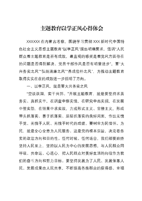 主题教育以学正风心得体会XXXXXX在内蒙古考察,围绕学习贯彻XXX新时代中国特色社会主义思想主题教育以学正风提出明确要求,强调人民群众看主题教育是否有成效,最直观的感受是看党风方面存在的问题是否得到解决、党员干部作风是否有明显进步,要大兴务实之风弘扬清廉之风养成俭朴之风,为推动主题教育取得实实在在的成效进一步指明了方向。一、以学正风,就是要大兴务实之风空谈误国,实干兴邦。开展主题教育,就是要坚持求真务实、真抓实干,在调查中察实情,在研究中出实招,在发展中使实劲,在结果中求实效,力戒形式主义、官僚主义,形成带头抓落实、善于抓落实、层层抓落实的良好局面,作出无愧于党、无愧于人民、无愧于时代的成绩。要树牢为民情怀。为民,就是全心全意为人民服务。这是党的根本宗旨,决定着务实的政治方向和目的性。任何时候、任何场合,我们都要始终坚持人民至上,坚持以人民为中心的发展思想,与人民群众同呼吸、共命运、心连心,把人民群众对美好生活的向往作为我们的奋斗方向和努力目标。要坚持发展为了人民、发展依靠人民、发展成果由人民共享,不断提高各族群众的获得感、幸福感和安全感。要紧盯人民群众最关心最直接的现实利益问题,站稳人民立场、破解民生困境、谋划群众实惠,把人民群众是否高兴、是否满意、是否赞成、是否答应,作为一切工作的出发点和落脚点。要抓好调查研究。上之为政,得下之情则治,不得下之情则乱。调查研究是谋事之基、成事之道,是做好各项工作的基本功。开展主题教育,就是要让党员、干部下沉一线、深入基层,到工作开展得好的地方去总结规律、挖掘经验,到群众意见大、矛盾突出、困难多的地方去调查情况、分析形势,拜人民为师、向人民学习,虚心求教,不断增强同人民群众的感情,学会做群众工作的方法。不了解真实情况,拍脑袋决策、拍胸脯保证、拍屁股走人,是做不好工作的。党员、干部要多到社区去、到企业去、到农牧区去、到边境一线去,放下架子、扑下身子,接地气、通下情,看看四个创建是否抓得实,看看农牧民钱袋子是否鼓起来,看看中华民族共同体意识是否铸得牢,看看经济社会发展是否高质量……要坚持问题导向,坚持底线思维,把问题作为研究和制定政策的起点,从基层一线和社会实践中找到破解难题、解决问题的钥匙,把工作的着眼点和着力点放在化解矛盾、解决问题上,推动四个创建扎实有效,推进四个走在前列加快实现。要务求实际成效。务实,关键在于一个实字。要紧紧围绕稳定发展生态强边四件大事,通过扎实细致的调查、深入透彻的研究,立足本职岗位发挥职能作用,拿出实实在在的对策建议。要用扎实的工作向下生根,用创新的意识向上突破,聚焦最困难的群体出谋划策,聚焦最突出的问题把脉问诊,聚焦最现实的利益开方破局,切切实实解决基层一线和人民群众的揪心事、烦心事、困难事。办实事、求实效,不是简单的送钱送物,不是摆盆景、搞花架子。既要防止和克服表态积极、行动消极,表面紧跟、光说不练,又要防止和克服照抄照转、生搬硬套。要追求功成不必在我、功成必定有我的境界,说干就干、真抓实干,立足当下解决具体问题,着眼长远完善体制机制,一件事情一件事情办,一年接着一年干,不断促进人的全面发展、全体人民共同富裕,助力推进社会主义现代化建设。二、以学正风,就是要弘扬清廉之风为政清廉,是我们党的优良传统,更是共产党人的政治要求。开展主题教育,以学正风,就是要在新的赶考路上,深入学习领会XXXXXX关于坚持自我革命、全面从严治党的重要论述,锚定清正廉洁、树牢新风正气,增强清廉为民的责任意识与使命担当,持续推进新时代党的建设新的伟大工程。要牢固树立正确权力观。权力是最大的腐蚀剂。党员、干部要时刻牢记,国家的一切权力属于人民,权力的行使必须是为人民服务、对人民负责、受人民监督。要提高依法用权的法治思维和依法办事的工作能力,加强权力的制约和监督,让权力在阳光下运行、在人民监督之下运行、在法治轨道上运行,切实为人民掌好权、行好权、用好权。党员、干部手握公权,要多想想为党和国家做好工作,多想想为人民谋幸福。要坚持当穷人的官,当老百姓的官,不能整天思考自己发家致富,思虑自己光宗耀祖,谋划子女出人头地,任何时候都要为人民代言,为老百姓代言,真正做到情为民所系、权为民所用、利为民所谋。要全面查找廉洁风险点。廉洁是党员、干部的道德操守和基本底线。一个人是否能够做到廉洁自律,最大的敌人是自己。祸难生于邪心,邪心诱于可欲。经济发展背后的诱惑无处不在,生活上不检点不自律,就会滋长私心、产生私欲、陷入心魔,做人就没有骨气,做事就不会硬气。内无妄思则外无妄动,党员、干部要严以修身、严以律己,把洁身自好作为第一关,生活兴趣爱之有道好之有度,防止被别有用心的人钓鱼,不要踩上地雷、掉入万丈深渊。要时刻自重自警