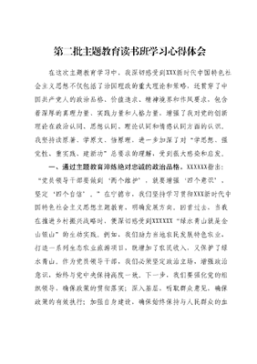 第二批主题教育读书班学习心得体会在这次主题教育学习中,我深切感受到XXX新时代中国特色社会主义思想不仅包括了治国理政的重大理论和策略,还贯穿了中国共产党人的政治品格、价值追求、精神境界和作风要求,包含着深厚的真理力量、实践力量和人格力量,增强了我对党的创新理论在政治认同、思想认同、理论认同和情感认同方面的认识。我坚持读原著、学原文、悟原理,进一步加深了对学思想、强党性、重实践、建新功总要求的理解,受到很大感染和启发。一、通过主题教育淬炼绝对忠诚的政治品格。XXXXXX指出:党员领导干部要做到两个维护,就要增强四个意识,坚定四个自信。在宁德市,我们坚持学习贯彻XXX新时代中国特色社会主义思想主题教育,明确发展方向。回首过去,当我在推进乡村振兴战略时,便深切感受到XXXXXX绿水青山就是金山银山的生动实践。例如,我们助力当地农民发展特色农业,打造一系列生态农业旅游项目,既增加了农民收入,又保护了绿水青山。作为党员领导干部,我们必须坚定政治立场,增强政治意识,始终与党中央保持高度一致。下一步,我们要强化党的组织领导,确保政策的贯彻落实;深入基层,听取群众意见,确保政策的有效执行;加强自身建设,确保始终保持与人民群众的血肉联系。二、通过主题教育历练担当作为的过硬本领。XXXXXX指出:真正的能力是在实践中锻炼出来的,真正的本领是在工作中培养起来的。宁德市在经济发展上,经历了许多的困难与挑战。学习贯彻XXX新时代中国特色社会主义思想主题教育后,我们明确了发展战略,大力支持中小企业创新发展。在此过程中,我们成功引进了多家技术型企业,为当地创造了大量的就业机会,并成功打造了一个技术创新高地。作为党员领导干部,我们必须增强四个意识,坚决贯彻XXXXXX的指导精神。下一步,我们要加强对中小企业的政策扶持,激发市场活力;进一步完善产业链,吸引更多的高新技术企业入驻;培训一批有知识、有能力、有担当的企业家,推动宁德经济持续稳定发展。三、通过主题教育锤炼力行严实的优良作风。XXXXXX指出:作风建设永远在路上,永远不能有松懈和停滞。在推进安全生产工作中,宁德市严格执行国家相关法律法规。学习贯彻XXX新时代中国特色社会主义思想主题教育之后,我们对所有企业进行了全面的安全隐患大排查,确保每一个工作环节都严格按照标准进行,有效减少了安全事故。作为党员领导干部,我们必须始终坚持廉洁自律,严守党的纪律。下一步,我们要进一步强化安全生产的责任制,确保每一位企业家都清楚自己的职责所在;加强与基层的联系,确保政策落地生根;持续开展作风建设活动,确保全体党员干部都能够为人民服务,不为私欲所动。