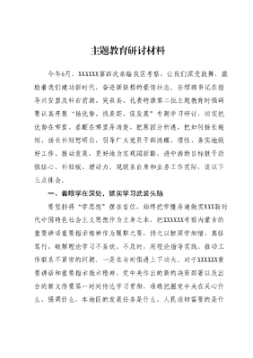 主题教育研讨材料今年6月,XXXXXX第四次亲临我区考察,让我们深受鼓舞,激励着我们建功新时代、奋进新征程的豪情壮志。孙绍骋书记在指导兴安盟及科右前旗、突泉县、扎赉特旗第二批主题教育时强调要认真开展扬优势、找差距、促发展专题学习研讨,切实把优势在哪里、差距在哪里弄清楚,把原因分析透,把如何扬长避短、扬长补短想明白,引导广大党员干部清醒、理性、务实地做好工作、推动发展,更好地为实现闯新路、进中游的目标鼓干劲强信心、补短板、增动力。现联系自身和业务工作实际,谈以下三点体会。一、着眼学在深处,抓实学习武装头脑要坚持将学思想摆在首位,始终把学懂弄通做实XXX新时代中国特色社会主义思想作为立身之本,把XXXXXX考察内蒙古的重要讲话重要指示精神作为履职之要,持之以恒深学细悟、真信笃行,破解理论学习不系统、不及时,用理论指导实践、推动工作联系不紧密的问题。一是在与时俱进上下功夫。对于XXXXXX重要讲话和重要指示批示精神、党中央作出的新的决策部署以及出台的新文件要第一时间传达学习贯彻,准确把握党中央在关心什么、强调什么,本地区的发展任务是什么、人民迫切需要的是什么,始终对国之大者心中有数,将学习成果转化为坚定理想、锤炼党性和指导实践、推动工作的强大力量。坚持学深悟透、融会贯通,着力把握政治意义、政治考量、政治要求,掌握贯穿其中的马克思主义立场观点方法,自觉做党的创新理论的坚定信仰者和忠诚实践者。二是发扬自我革命精神。对照XXX关于以学铸魂以学增智、以学正风、以学促干的重要要求,认真检视自身在理论学习、政治素质、能力本领、担当作为、工作作风、廉洁自律等方面存在的问题,深入开展党性分析,严肃开展批评和自我批评,自觉增强党性修养。二、着力补齐短板,推动工作提质增效XXXXXX2020年参加十三届全国人大三次会议内蒙古代表团审议时,嘱咐我们用心用情用力解决群众关心的就业、教育、社保、医疗、住房、养老、食品安全、社会治安等实际问题努力让群众看到变化、得到实惠。从我县情况看,近几年民生事业发展不断向好,工作不断取得新突破、新进展。就我分管的领域来说,教育教学质量稳步提升,2023年中高考成绩再创佳绩;社会保险覆盖面持续扩大;建设108个医保服务站(点),成功打造15分钟医保便民服务圈,其中,12家首批成立的医保服务站率先挂牌。但我们不能满足于已取得的成绩,要牢记孙绍骋书记的嘱托主动与周边可比的地区比一比,找出自身的优势和短板,在摸清优势中增添干劲,在正视差距中增强动力,努力把长板拉长、短板补齐。我县发展仍然处在爬坡过坎的关键时期,发展不平衡不充分的问题依然严峻。一是卫生领域,医疗服务能力不足。医疗卫生人才数量不足与技能不强的问题并存,优质医疗资源相对短缺,基层服务能力不强;医改进入深水区,紧密型医共体发展迈入快车道,但部分配套政策尚未跟上发展脚步;出生人口逐年下降,人口发展呈现少子化、老龄化、区域人口增减分化的趋势性特征。二是教育领域,学校布局不合理、教育资源分布不均效益不高等问题依然存在,学位短缺,大班额,功能室被挤占等现象严重影响开齐开足规定课程,制约全县教育均衡协调发展。三是人社领域,就业岗位开发不足,企业总量较少,高收入岗位不足,对大学毕业生就业吸引力不强;劳动者保障方面还存在着亟待解决的问题,比如不签订劳动合同或劳动合同不规范、不按要求缴纳五险一金、拖欠农民工工资等现象时有发生。四是医保领域,城乡居民基本医疗保险基金缺口较大,基金运行存在风险隐患。三、着重狠抓落实,一以贯之促进发展XXXXXX到党中央工作后先后四次来内蒙古考察,四次以来对内蒙古的重要指示精神是一以贯之的,那么我们抓贯彻落实也要一以贯之,久久为功。一是打造健康XX。深入开展健康XX行动,以基层建设为重点,以改革创新为动力,坚持预防为主,中西医并重,全方位、全周期保障人民健康。继续深化紧密型县域医共体改革,扎实推进各项重点改革任务,继续推动总医院统筹、县乡村一体化管理的紧密型医共体建设,建立完善医共体内部管理机构、运行制度机制建设,以信息化建设为抓手,推进医共体内部行政、人事、财务、业务、用药目录、信息系统等统一管理。二是打造教育强县。持续推动全县教育教学管理规范化、制度化科学化,以推动基础教育高质量发展为目标,深化教育体制改革提高课堂效率、提高作业质量、提高课后服务水平,巩固双减工作成果;持续改善办学条件,从尊重教育规律,着眼长远发展的角度,通过新建、改扩建、撤并等方式,调整优化中小学幼儿园布局,努力构建布局科学、结构合理、群众满意的教育发展新格局,实现全县基础教育优质均衡、可持续发展。紧扣铸牢中华民族共同体意识这条主线,坚定不移全面推行使用国家统编教材。三是促进就业创业。实施就业优先战略,稳妥做好返乡农民工、高校毕业生、城镇困难人员、农村脱贫
