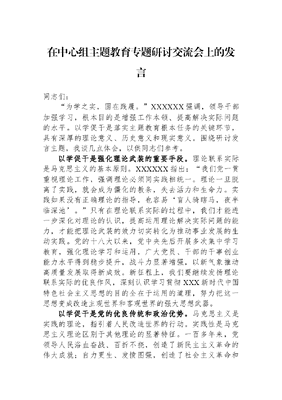在中心组主题教育专题研讨交流会上的发言同志们:为学之实,固在践履。XXXXXX强调,领导干部加强学习,根本目的是增强工作本领、提高解决实际问题的水平。以学促干是落实主题教育根本任务的关键环节,具有深厚的理论意义、历史意义和现实意义。围绕研讨发言主题,我谈几点体会,以供同志们参考。以学促干是强化理论武装的重要手段。理论联系实际是马克思主义的基本原则。XXXXXX指出:我们党一贯重视理论工作,强调理论必须同实践相统一。理论一旦脱离了实践,就会成为僵化的教条,失去活力和生命力。实践如果没有正确理论的指导,也容易盲人骑瞎马,夜半临深池。只有在理论联系实际的过程中,我们才能进一步深化对理论的认识,提高运用理论解决实际问题的能力,才能把理论武装的效力切实转化为推动事业发展的生动实践。党的十八大以来,党中央先后开展多次集中学习教育,强化理论学习和运用,广大党员、干部的干事创业能力水平得到稳步提升,战斗力显著增强,以新气象推动高质量发展取得新成效。新征程上,我们要继续发扬理论联系实际的优良作风,深刻认识学习贯彻XXX新时代中国特色社会主义思想的目的全在于运用的道理,努力把这一思想变成改造主观世界和客观世界的强大思想武器。以学促干是党的优良传统和政治优势。马克思主义是实践的理论,指引着人民改造世界的行动。实践性是马克思主义理论区别于其他理论的显著特征。一百多年来,党领导人民浴血奋战、百折不挠,创造了新民主主义革命的伟大成就;自力更生、发愤图强,创造了社会主义革命和建设的伟大成就;解放思想、锐意进取,创造了改革开放和社会主义现代化建设的伟大成就;自信自强、守正创新创造了新时代中国特色社会主义的伟大成就。党和人民一百多年的奋斗,书写了中华民族几千年历史上最恢宏的史诗。特别是党的十八大以来,以XXX同志为核心的党中央领导全党全军全国各族人民砥砺前行,全面建成小康社会目标如期实现,党和国家事业取得历史性成就、发生历史性变革。XXXXXX深刻指出,新时代的伟大成就是党和人民一道拼出来、干出来、奋斗出来的。以学促干,就是要通过深入学习贯彻XXX新时代中国特色社会主义思想,把XXX新时代中国特色社会主义思想转化为指导实践、推动工作的强大力量,增强全党担当作为、干事创业的能力和本领,以新气象新作为新成效打开事业发展新天地。以学促干是完成党的中心任务的必然要求。XXXXXX指出,从现在起,中国共产党的中心任务就是团结带领全国各族人民全面建成社会主义现代化强国、实现第二个百年奋斗目标,以中国式现代化全面推进中华民族伟大复兴强调当前最重要的任务,就是撸起袖子加油干,一步一个脚印把党的XX大作出的重大决策部署付诸行动、见之于成效。我们靠实干创造了辉煌的过去,也要靠实干开创更加美好的未来。完成好新时代新征程中心任务,需要广大党员、干部真抓实干、务求实效,聚焦问题、知难而进,主动进取担当。我们要坚持学思用贯通、知信行统一,把XXX新时代中国特色社会主义思想转化为坚定理想、锤炼党性和指导实践、推动工作的强大力量。干事担事,是干部的职责所在,也是价值所在。新时代的党员、干部唯有强化干字当头的意识,埋头苦干、担当作为,才能不辜负党和人民的期望和重托。发言完毕,不当之处,请同志们批评指正,谢谢。