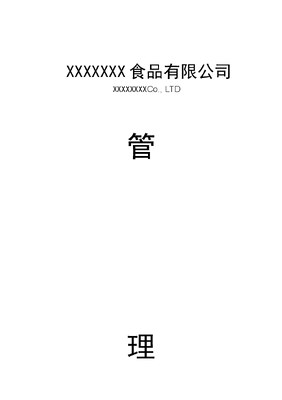 XXXXXXX食品有限公司XXXXXXXXCo., LTD管理制度编辑:XXXXXX审批:XXXXXX2017年01月10日目录1.岗位责任制度···········································012.记录及文件管理制度·····································033.人员培训管理制度·······································094.从业人员健康检查、健康档案制度·························115.卫生管理制度···········································136.采购进货验收查验管理制度·······························177.食品添加剂管理制度·····································188.生产过程安全管理制度···································199.设施管理制度···········································2010.防止污染控制程序······································2211.产品标识和可追溯性控制制度····························2412.产品留样管理制度······································2813.不合格品管理制度······································3114.产品出厂检验管理制度··································3315.贮存运输管理制度······································3416.会计人员管理制度······································3517.出纳人员管理制度······································3618.委托检验管理制度······································3719.检验管理制度··········································3820.仓库管理制度··········································43岗位责任制度一、总经理1、对本厂最终产品质量和质量管理工作全面负责。2、主持制订质量方针和质量目标,建立、健全质量管理制度。3、批准和颁发本厂质量管理手册,对质量管理手册的贯彻执行情况进行考核。4、对本公司质量管理活动提供充分的资源保证。二、生产技术主管1、根据本厂的生产计划,组织安排生产,并按时、按质、按量完成。2、确定产品的生产工艺参数,编制产品生产作业指导书。3、监督检查生产车间的生产情况和卫生管理情况,及时掌握员工的思想动态,解决问题。4、掌握生产所用原辅料质量,数量和领用消耗情况,并填制原始记录。对生产中出现的异常情况及时向经理汇报,并及时组织人员解决。三、质量主管1、负责一线产品质量的把关,对合格产品予以放行,不合格产品马上标明,停止生产并分析原因,直至找到原因,整改合格。2、负责本厂年度质量工作计划和质量目标的制定,对其实施效果负责。3、负责本厂质量管理方面,与供方、检验机构、政府机构等外第 1页 /共 45页部各方面的联络工作。4、负责检验室工作,确保检验数据真实、可靠,对产品出现的问题,及时召集质量管理小组成员分析原因,对症下药。5、协助总经理制订质量方针和质量目标,建立、健全质量管理制度。四、检验员1、负责生产用原辅材料的检验分析工作。2、负责生产过程的半成品及成品的检验分析工作。3、负责使用和维护本岗位的设备、仪器,配制标准试剂。4、负责样品取样、封样工作,并认真填写原始记录,及时上报分析结果,对原辅料、半成品及成品质量问题处理有建议权。五、营销采购主管1、负责本厂原材料的采购,产品的销售。2、负责建立本厂长期的业务网,并开发新顾客。3、负责原材料质量把关,严禁不合格产品进入本库。4、负责组织产品销售工作,扩大销售渠道。六、仓储主管1、负责本厂设备采购、维护、保修工作,以确保正常生产。2、负责组织人员对设备定期清理,防止不必要的磨损,延长设备寿命。3、负责本厂原料、成品的仓库保管工作,做到防虫、防鼠、防潮、防盗。第 2页 /共 45页4、所有进、出口原料、成品必须有原始台帐可查。七、财务主管1、负责本厂文件和资料控制,做好文书档案管理工作。2、负责质量管理文件的起草、分发、修改、发布