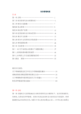 财务管理制度目 录第一章 总则┄┄┄┄┄┄┄┄┄┄┄┄┄┄┄┄┄┄┄┄ 1第二章 财务管理与会计核算体系┄┄┄┄┄┄┄┄┄┄┄┄1第三章 财务计划管理┄┄┄┄┄┄┄┄┄┄┄┄┄┄┄┄ 7第四章 资金管理┄┄┄┄┄┄┄┄┄┄┄┄┄┄┄┄┄┄ 9第五章 固定资产管理┄┄┄┄┄┄┄┄┄┄┄┄┄┄┄┄ 12第六章 低值易耗品及印刷品管理┄┄┄┄┄┄┄┄┄┄┄ 14第七章 费用开支管理┄┄┄┄┄┄┄┄┄┄┄┄┄┄┄┄ 15第八章 财务开支的控制及审批权限┄┄┄┄┄┄┄┄┄┄ 20第九章 物资采购管理┄┄┄┄┄┄┄┄┄┄┄┄┄┄┄┄ 24第十章 合同管理┄┄┄┄┄┄┄┄┄┄┄┄┄┄┄┄┄┄ 26第十一章 关于处理会计核算若干问题的规定┄┄┄┄┄┄ 27第十二章 财务部单据流程规范┄┄┄┄┄┄┄┄┄┄┄┄ 44第十三章 财务工作交接及其档案管理┄┄┄┄┄┄┄┄┄ 50第十四章 附则┄┄┄┄┄┄┄┄┄┄┄┄┄┄┄┄┄┄ 53相关补充规定:关于明确收款过程当中的几个特殊问题的通知┄┄┄┄┄┄ 54采购部物资采购发票管理的暂行办法┄┄┄┄┄┄┄┄┄┄ 56关于明确物流单据流程及相关工作的通知┄┄┄┄┄┄┄┄ 58财务部单据流程变动通知┄┄┄┄┄┄┄┄┄┄┄┄┄┄┄ 60第一章 总则第一条 为提高公司及控股成员企业财务管理与会计核算水平,逐步实现规范化、制度化、信息化的科学管理,达到对经济活动及收支全过程实行有效监控,同时提高财务运作效率的目的。依据《中华人民共和国会计法》、《中华人民共和国公司法》、《企业会计制度》、《企业会计准则》以及其他相关法规,结合公司的特点和管理要求制定本制度。第二条 本制度制定的原则和宗旨是:改制先行、规范管理、稳健高效、量入为出。充分调动全员积极性、创造性,力求最合理、最有效地利用一切资源,用最少的物化劳动及活劳动,获取最大的经济效益及社会效益。使全体企业不断发展壮大。第三条 本制度是公司及控股成员企业在经济活动中的财务管理与会计核算的总纲,适用于全体企业。第四条 本制度经必要的程序讨论通过后,自 年 月 日起施行,原有相关制度与本制度不符或有抵触部分同时废止。本制度由董事长签署转发总经理执行,并授权财务部负责具体解释。第二章 财务管理与会计核算体制第五条 公司及控股成员企业财务体制实行:越级任免、双线考核;垂直管理、分级运作;账款分管、相互监控的财务管理与会计核算机制。第六条 财务管理与会计核算组织架构图财 务 经 理 (一)、改制期间财务组织架构图(二)各岗位职责:一、财务经理(经理)岗位职责:(一) 岗位名称:财务经理(经理)(二) 直接上级:公司(公司)总经理、董事会直接下级:财务主管(财务部长) (三) 本职工作:负责公司及子公司财和物的管理工作(四) 直接责任:(1)在总经理领导下全面负责公司的财务管理工作;(2)编制各项目预算、财务收支计划、信贷融资计划,拟订资金筹措和使用方案,开辟财源,有效地使用资金;(3)监督公司财务计划的执行\决算\预算外资金收支与财务收支有关的各项经济活动及其经济效益;(4)建立健全经济核算制度,利用财务会计资料进行经济活动分析;(5)参加总经理日常经营管理工作会议,参与经营决策,审查或参与拟定经济合同或其它经济文件;(6)协调财务部与各子公司的关系,正确处理银行、税务部门关系;(7)及时与财务部人员沟通,不断提高财务人员的素质及公司的财务管理水平,督促检查财务部人员业务工作和公司财务核算,严格考核,并做好检查记录,提出整改意见。(8)财务部与子公司负责人定期召开例会,对本公司经济活动进行检查和分析,一经发现薄弱环节,及时采取措施,妥善处理解决;(9)审核公司财务报告及税务报告,签发材料、设备、费用等资金的收支,确认后进行另协调与其他单位的资金往来与结算。(10)定期收集公司与子公司:会计月结报表、财务分析报告、进行分析整改处理、有向总经理汇报情况。(11)合理分配会计部门的人员的工作。(12)承办公司领导交办的其他工作;二、 财务管理中心财务主管(部长)岗位描述(一) 岗位名称:财务主管(部长)(二) 直接上级:财务经理(三) 直接下级:财务中心职员(四)主要职责(1)具体执行有关财务制度,带领财务部人员完成公司的日常工作;(2)按照经济核算原则,定期检查,分析公司财务、成本、费用和利润的执行情况,挖掘增收节支潜力,考核资金使用的效果,督促本公司有关部门降低消耗、节约费用、提高经济效益,及时向公司提出合理化建议,当好公司参谋;(3)详细审核财务会计每张凭证、有关的内容、数字、金额、期限、应收应付、手续等是否准确无误,签名确认无误才安排会计过帐; (4)负责各项目的帐总体策划设帐、安排处理报表,另在规定的时间内上交国家有关部门要求上报的资料:(包括报税、纳税资料、统