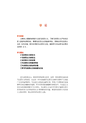 导 论学习目标从整体上理解和把握什么是马克思主义,了解马克思主义产生的历史 过程和发展阶段,掌握马克思主义的基本特征,深刻认识马克思主义的 当代价值,树立科学的马克思主义观,增强学习和运用马克思主义的自 觉 性 。学习要点0马克思主义的含义0马克思主义的创立0马克思主义的发展○马克思主义的基本特征○马克思主义的当代价值○学习马克思主义的态度与方法在人类思想史上,就科学性和影响力而言,没有一种思想理论能达到马克思主义的高度,也没有一种学说能像马克思主义那样对世界产生如此广泛而深远的影响。马克思主义犹如壮丽的日出,照亮了人类探索历史规律和寻求自身解放的道路,至今依然闪烁着耀眼的真理光芒。马克思主义具有怎样的独特魅力?当今时代,马克思主义为何不可替代?新时代青年应当如何学习运用马克思主义?要理解这些问题,就需要系统学习马克思主义基本原理,树立科学的马克思主义观。2导 论一、什么是马克思主义只有正确理解马克思主义的科学内涵,才能正确对待马克思主义。究竟什么是马克思主义?什么是马克思主义基本原理?回答这些问题,对树立科学的马克思主义观至关重要。马克思主义是由马克思、恩格斯创立并为后继者所不断发展的科学 理论体系,是关于自然、社会和人类思维发展一般规律的学说,是关 于社会主义必然代替资本主义、最终实现共产主义的学说,是关于无 产阶级解放、全人类解放和每个