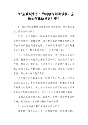 一位“金融副省长”的超级深刻讲话稿:金融如何撬动招商引资?.docx