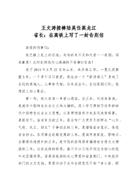 王文涛:接棒陆昊任黑龙江省长在高铁上写的一封信.docx