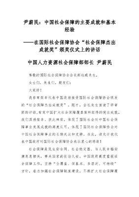 尹蔚民:在国际社会保障协会“社会保障杰出成就奖”颁奖仪式上的讲话.docx