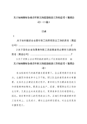 (3篇)关于如何做好企业青年职工的思想政治工作的思考(集团公司).docx