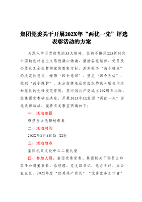 集团党委关于开展202X年“两优一先”评选表彰活动的方案.docx