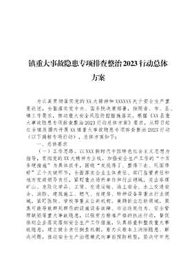 镇重大事故隐患专项排查整治2023行动总体方案.docx