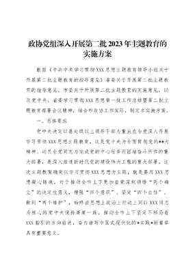 政协党组深入开展第二批2023年主题教育的实施方案.docx