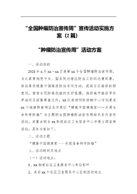 (2篇)“全国肿瘤防治宣传周”宣传活动实施方案.docx