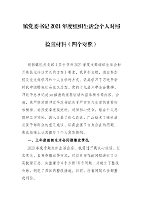 镇党委书记2021年度组织生活会个人对照检查材料(四个对照).docx