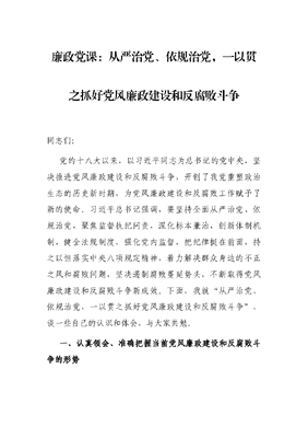 廉政党课:从严治党、依规治党,一以贯之抓好党风廉政建设和反腐败斗争.docx