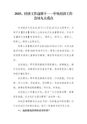 中央经济工作会议精神解读稿:2025,经济工作这样干——中央经济工作会议九大看点.docx