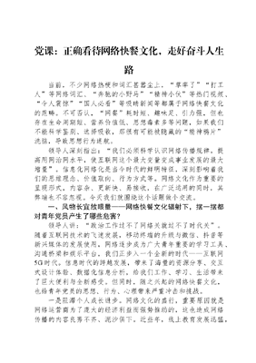 党课:正确看待网络快餐文化,走好奋斗人生路.docx