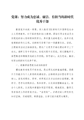 党课:努力成为忠诚、廉洁、有担当的新时代优秀干部.docx