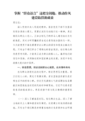 掌握“群众语言”这把金钥匙,推动作风建设取得新成效.docx