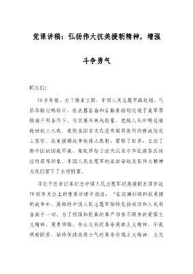 党课讲稿:弘扬伟大抗美援朝精神,增强斗争勇气.docx