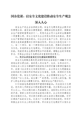 国企党课:以安全文化建设推动安全生产观念深入人心.docx