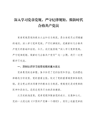 深入学习党章党规,严守纪律规矩,做新时代合格共产党员.docx
