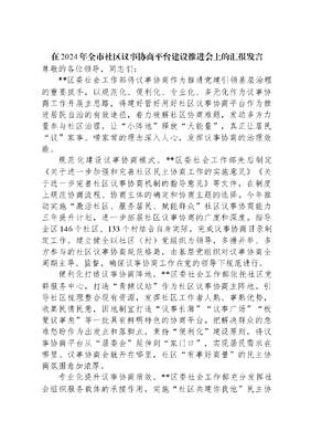 在2024年全市社区议事协商平台建设推进会上的汇报发言.docx