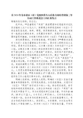 在2024年全市社区(村)党组织带头人后备力量培育储备三年行动工作推进会上的汇报发言.docx