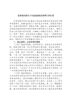 县委组织部关于全县流动党员管理工作汇报.docx