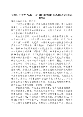 在2024年全省“五位一体”社区治理共同体建设推进会上的汇报发言.docx