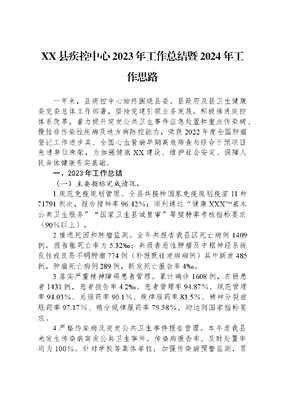 XX县疾控中心2023年工作总结暨2024年工作思路.docx