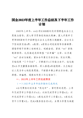 国企2023年度上半年工作总结及下半年工作计划.docx