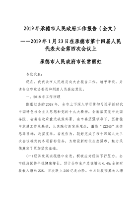2019年承德市人民政府工作报告(全文).docx