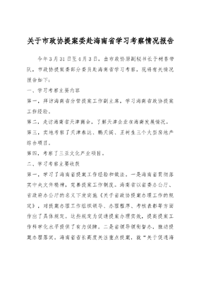 关于天津市政协提案委赴海南省学习考察情况报告.docx