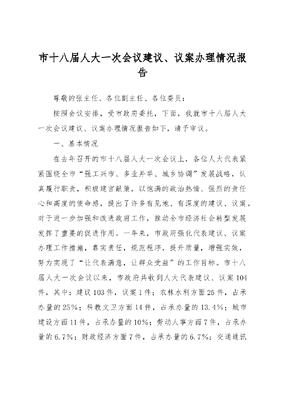玉门市人民政府市十八届人大一次会议建议、议案 办理情况报告.docx