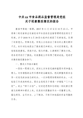 中共xx市食品药品监督管理局党组关于巡察整改情况的报告.docx