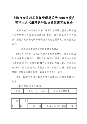 上海市食品药品监督管理局关于 2018年度办理市人大代表建议和政协提案情况的报告.docx