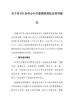 关于对XX市中心小学素质教育综合督导报告.docx