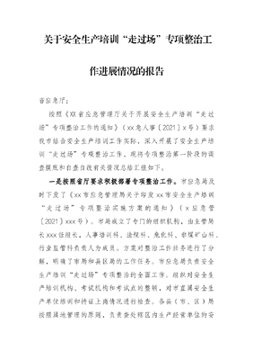 关于安全生产培训“走过场”专项整治工作进展情况的报告.docx