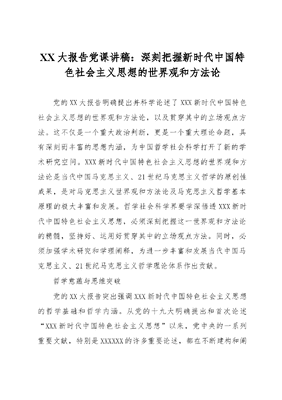 XX大报告党课讲稿:深刻把握新时代中国特色社会主义思想的世界观和方法论.docx