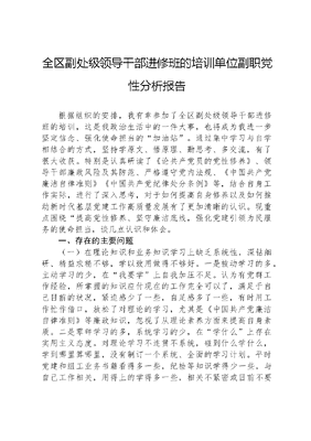 全区副处级领导干部进修班的培训单位副职党性分析报告.docx