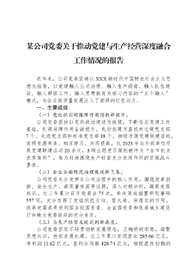某公司党委关于推动党建与生产经营深度融合工作情况的报告.docx