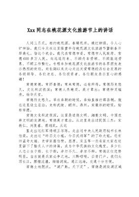 Xxx同志在桃花源文化旅游节上的讲话.docx