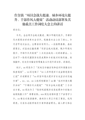 在全镇“项目会战大提速、城乡环境大提升、干部作风大提效”活动动员部署及其他重点工作调度大会上的讲话.docx