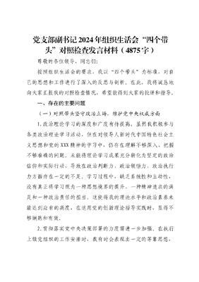 党支部副书记2024年组织生活会“四个带头”对照检查发言材料.docx