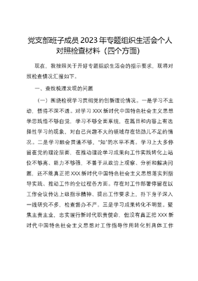 党支部班子成员2023年专题组织生活会个人对照检查材料(四个方面).docx