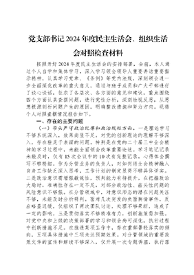 党支部书记2024年度民主生活会、组织生活会对照检查材料.docx