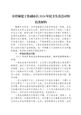 分管城建工作副市长2024年民主生活会对照检查材料.docx